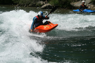 Primer va ser l’slalom, desprès el descens, i aquest cap de setmana l’Ian i l’Aleix s’han estrenat en competició de Rodeo. Ara ja dominen l’esquimotatge i tenen la suficient tècnica com per estar la mar de tranquils a l’aigua.Ha estat al Campionat d’Espanya de Campo. L’Ian és massa petit però han fet una prova de “demostració” pels infantils. Consistia en fer el màxim d’esquimotatges en 10 segons, 2 chandels per cada costat, i algunes figures a l’onada.