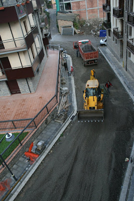 Tenim el carrer tallat. Però aquesta vegada penso que hem d’estar contents. Fa 6 anys que el carrer estar per fer i sembla que estan a punt d’asfaltar-lo! Aquest matí estaven enllestint detalls i ara quan ja era fosc han passat l’apissonadora. A veure quan hi posen les màquines. Demà dissabte? No crec… Potser dilluns! Haurem de fer una festa!!!