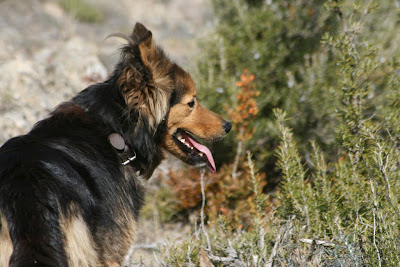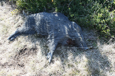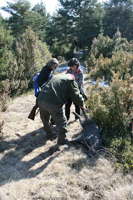 Avui també hem tingut company de camí. Un gos de Balestui que ens ha seguit fins a Baro. Al pobre tampoc li agraden massa els tiros. I quan ens han ensenyat un tocino que acaben de matar no li ha fet ni cas. Espero que torni a casa seua, perquè de veritat era un gos molt majo :)