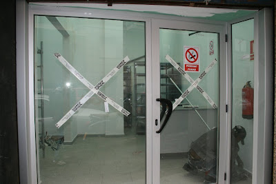 Al principi els veïns estaven intrigats amb què hi posaven, però un bon dia el president va rebre una carta on se li notificava que la botiga era una botiga de petards i que tenia x dies per al·legar si ho creia convenient. Lo bo del cas és que la botiga, com podeu veure, ja està quasi bé a punt d’estar llesta, i per tant deu tenir tots els permisos en regla. I té bastants rètols de prohibit fumar, i un extintor…
