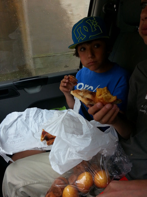 El viatge d’anada va ser remullat. 3.5 hores fins a l’estació del tren de Girona, on havíem de recollir la quarta integrant del team furgo concentració. Vam fer una parada tècnica per comprar berenar i esmorzar de tots els dies.