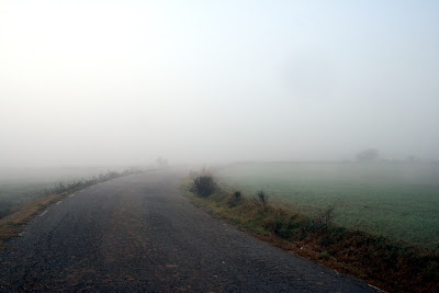 Ja tornant, cap a Tàrrega, altra vegada boira, molt espesa, i 4º. Es va fer de nit molt abans del que tocava ;)