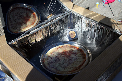 A l’stand del Consell Comarcal tenien un forn solar. Hi han cuit diverses pizzes. Molt bé. El forn estava a 100 graus. Fa una mica de bulto, per anar d’excursió no serviria però és curiós.
