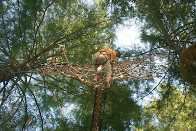 Aquesta tarda hem anat al parc d’arbres… Buf… L’Aleix ha fet tot el recorregut, encara que hi ha hagut llocs que ha fet algunes trampes. L’Ian ha abandonat a un pas més que jo, i s’ha buscat la vida per baixar. L’Hug ha quedat al mateix lloc que l’Ian perquè no arribava a posar els mosquetons. L’han baixat amb una corda.