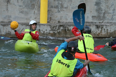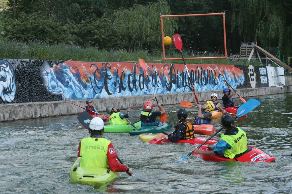 Avui ha començat la Lliga de Kayak Polo. És una espècie de waterpolo, o handbol, però en caiac. Com que no hi ha piscina, es fa al canal de l’Escola de Piragüisme. Les parts són de 10 minuts i sovint acaben bastant cansats…