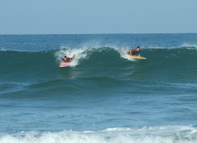 Els nens, com que es posen de peu bé i aguanten l’equilibri, han pogut anar a buscar oles més grans.