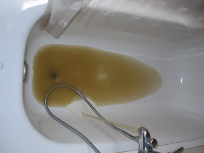 Desprès de la primera tongada de feina del dia m’anava a dutxar i a esmorzar, però vist el que surt per l’aixeta, la dutxa haurà d’esperar… A l’Ajuntament m’han dit que n’hi ha per 1 hora aproximadament…