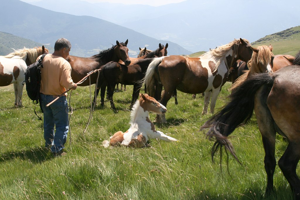 Aquest matí he acompanyat el Víctor a la muntanya de Llessui per curar un pollí. En una pota del darrera hi té una ferida oberta i està molt inflamat. No ha costat gens agafar-lo i mentre el curava plantava com si res. S’ha portat la mar de bé, el pobre. Durant la cura tota la resta estava a sobre nostra, més a prop impossible! Són prou simpàtics ;)