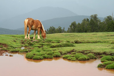 Tot i ploure, l’Hug i jo hem pujat a Prat Montané, pel camí hem vist un trencalòs, vaques, cavalls, bolets i moltes floretes…