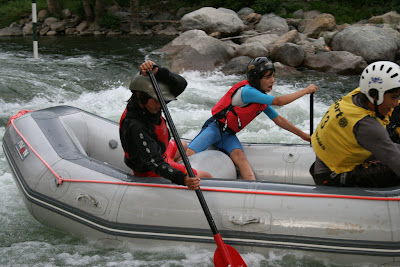Avui hi havia el Campionat d’Espanya i Open nocturn de Rafting. Menys mal que ha començat puntual i encara amb llum, perquè poc a poc el cel s’ha anat enfosquint fins a fer-se fosc del tot abans d’hora. De tant en tant plovia i queien llamps i trons. Uns llamps espectaculars! Llàstima que havia d’estar per altres coses…