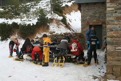 Hem anat al bosc de Virós. Al Refugi Gall Fer hem llogat les raquetes per aquells que no en tenien.
