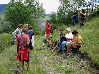 Hem començat a Altron, llegint un fragment del llibre Pedra de tartera, de la Maria Barbal, per seguir fent camí cap a Seurí per dins el bosc i anar llegint altres fragments i anant escoltant el Pamano i resta de barrancs.