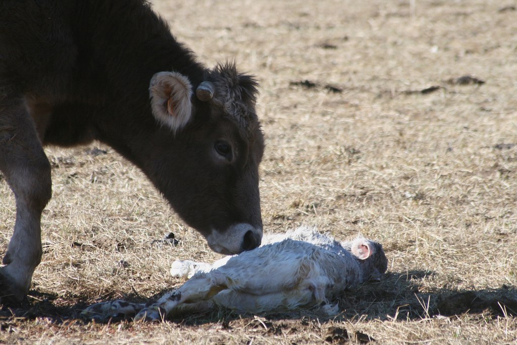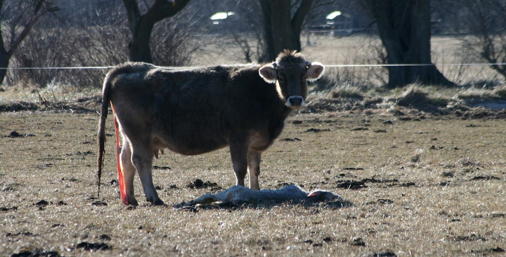 No acabàvem de veure-ho bé i hem entrat al prat per anar a mirar i fer alguna foto. El videll ja havia sortit. La vaca estava traient la placenta i no parava de llepar el videll. Estava mort.