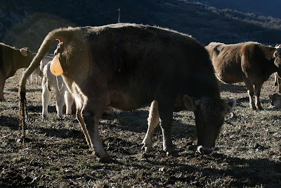 L’anècdota del dia ha estat prou trista. Just al començar hem vist una vaca prenyada a punt de parir. Tenia la bossa d’aigües mig sortint, i quan tenia contraccions es veien les potes del vedell. Quan li venien les contraccions s’estirava a terra, quan se li passava s’aixecava i feva unes passes. Hem observat que tenia una gran cicatriu pel que em deduït que ja li havien fet una cessària.
