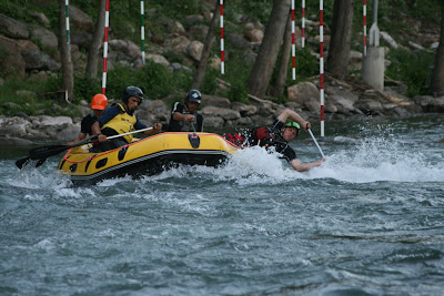El rafting va tenir molt èxit: 40 barques. És una cursa a la que hi participa gent de totes edats, els que s’hi dediquen, els turistes, i els que en tenen ganes, encara que sigui la primera vegada que remen (normalment un sempre sap de què va, que sino els hauríem d’anar a buscar a Pobla!)